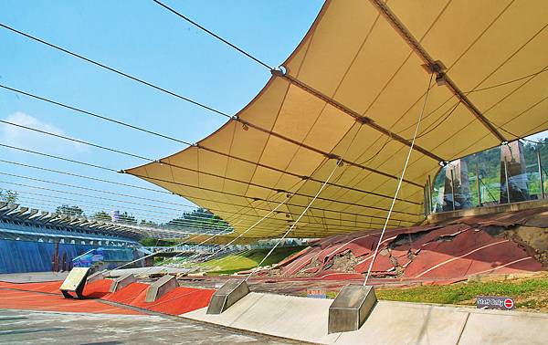 車龍埔斷層造成操場跑道的隆起,約拉抬了2公尺高,幾乎是高個男生的高度了!