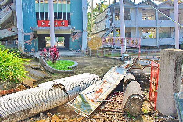 原本校門口的拱型柱子也都倒塌,車籠埔斷層剛好切過此區。