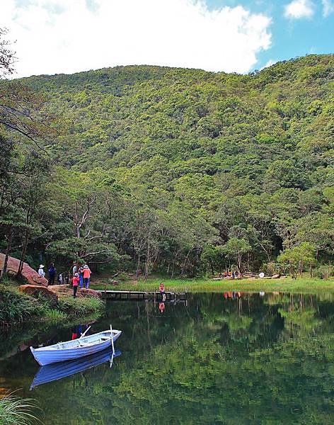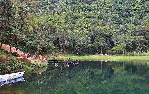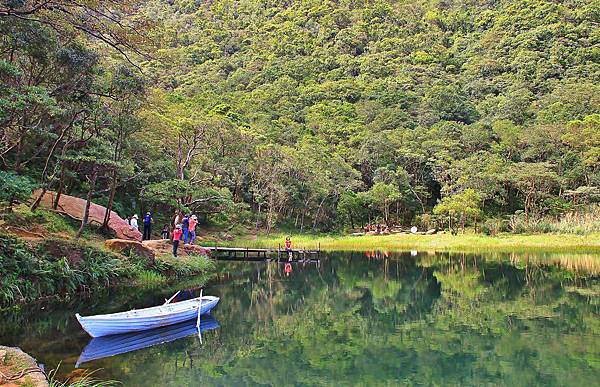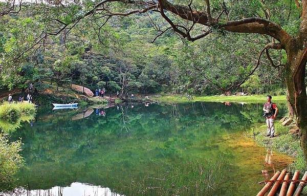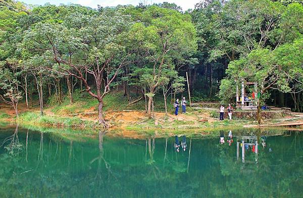 穿過約50公尺的步道後,夢幻般的小湖隨即映入眼簾。這天非常的熱鬧,還有許多攝影班在這裡練習外拍。