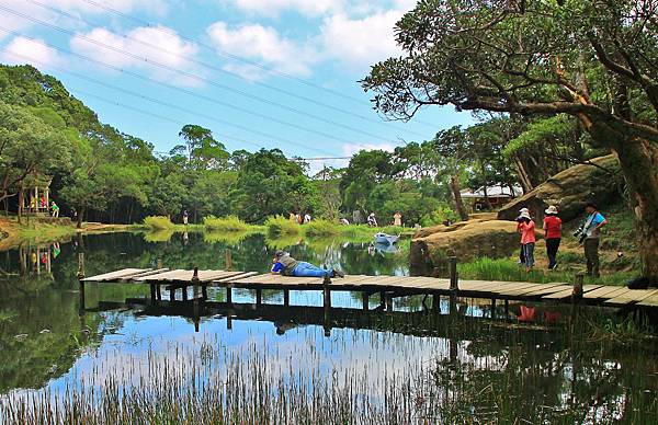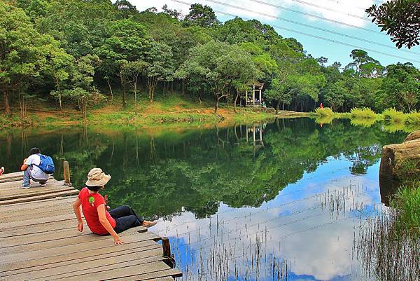 夢湖周圍有一圈環湖步道,除了有涼亭座椅可休憩外,也有扁平的大石可以坐在上頭靜靜地感受大自然的美。