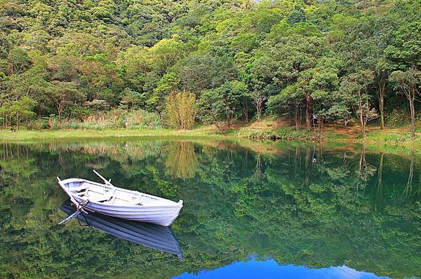 環湖步道一景,船頭會隨著水流默默的轉變方向~
