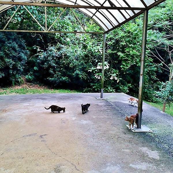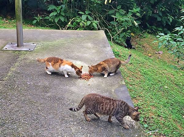 吃的津津有味呢~後面那隻黑貓太搶戲了!這裡感覺又是一個貓咪的天堂,也因為知名度不高,來訪的人很少。