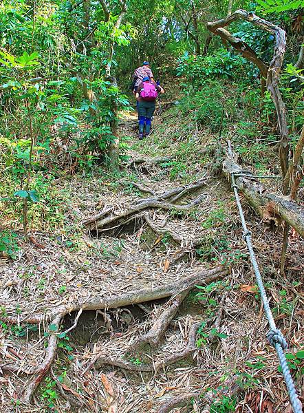 步道一景,太陡峭的地方都有繩子可以輔助攀爬,相當貼心。