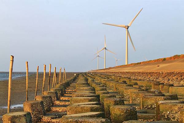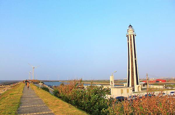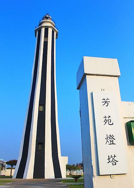 芳苑燈塔側照,與一旁的風力發電機的風車排排站。燈塔基本資訊: