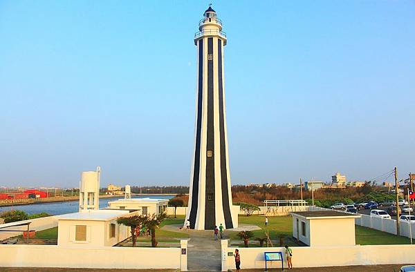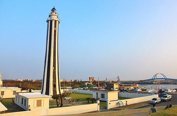 芳苑燈塔一景,右側即為王功漁港,遠方的橋梁為王者之弓橋!燈塔的牆面似乎有重新粉刷過,知前來訪時,牆上都有台灣各燈塔的簡介,現在只剩白牆一面!