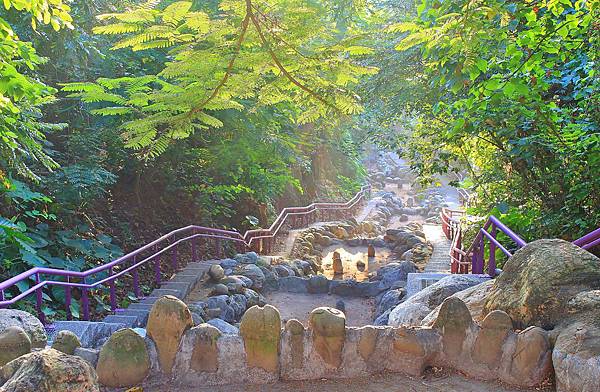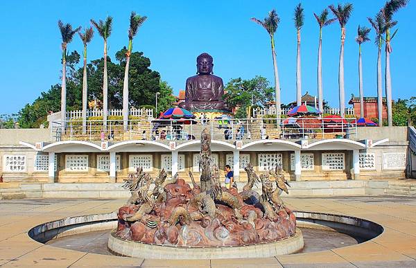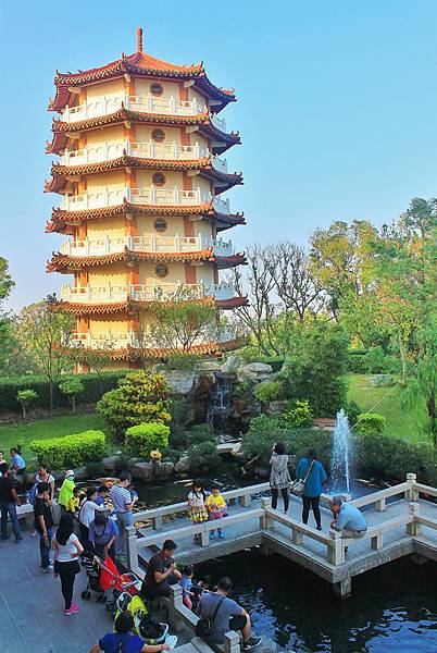 大佛寺後方的禪心園一景,旁邊是八卦塔。很多爸爸媽媽都在這裡溜小孩,池塘內有錦鯉魚百餘條。