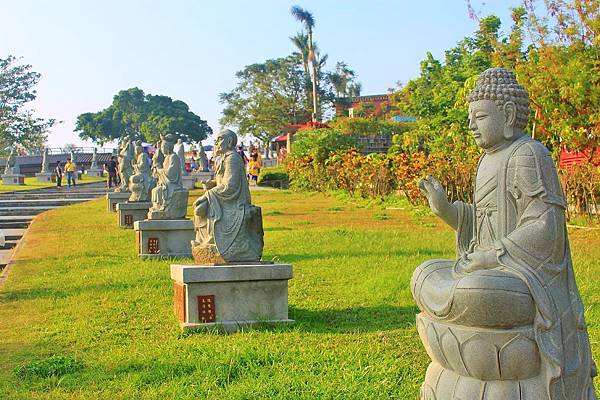 一進八卦山大佛風景區的牌樓,迎面而來的就是兩旁排排站的菩薩石雕,這些石雕沒有一尊是重複的!