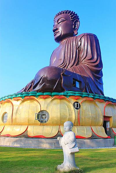 大佛與一旁的小沙彌,大佛內部的入口就位在蓮花座底部。