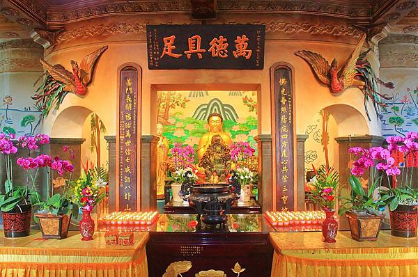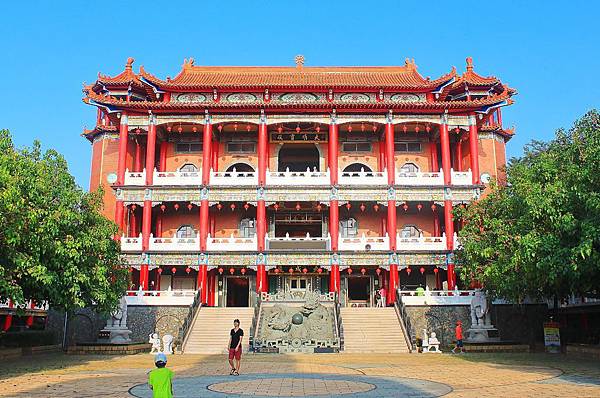 八卦山大佛寺一景。大佛寺內恭奉台灣各尊稀有珍貴神像,一樓是大成殿、二樓恩主殿、三樓大雄寶殿等,以全世界僅有三尊之一的孔子聖王像與全台唯一金面關公最為尊貴稀有!