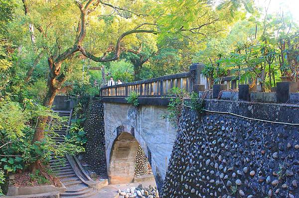 銀橋飛瀑一景,原本水流應該是要順著這個小河道往下流,但這個時節完全沒有供水,因此就看不到"飛瀑"的景色啦!河道旁有步道可以一路往山腳下走,銀橋就位於下方。