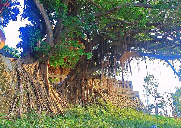 八卦山頂旁的老樹,樹根盤縱,老樹屹立不搖。