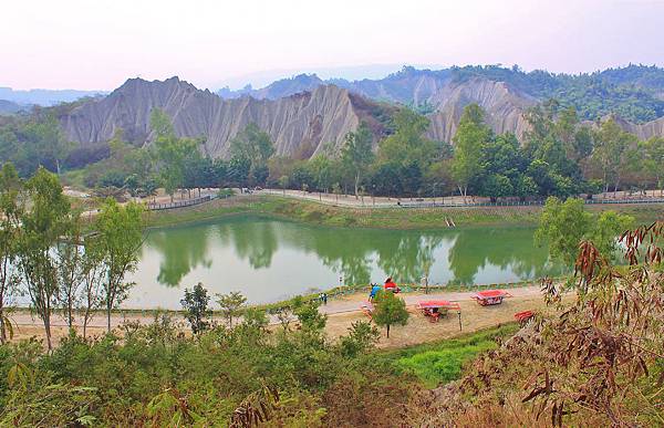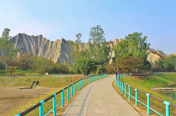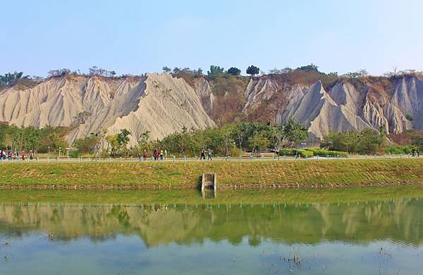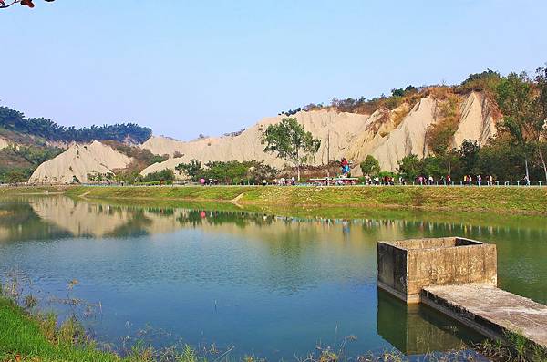 整個園區都泥岩地質所圍繞,步道右側為"玉池",左側的池水已經乾涸。