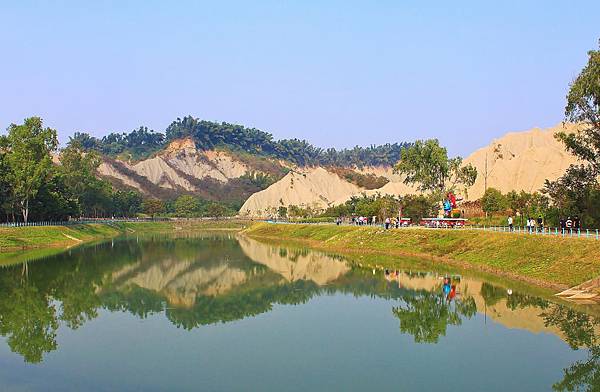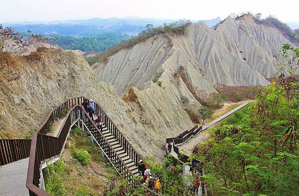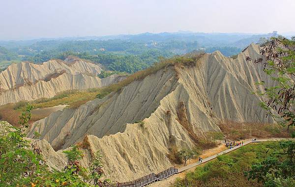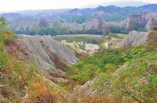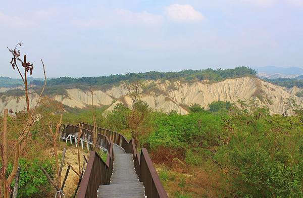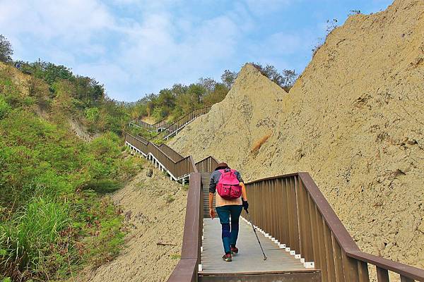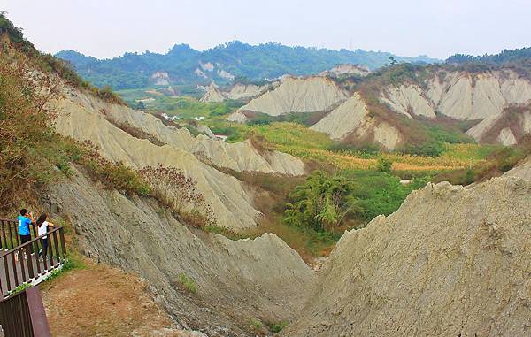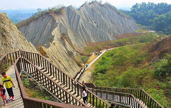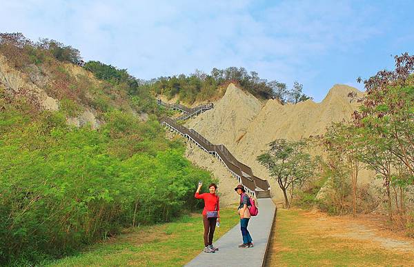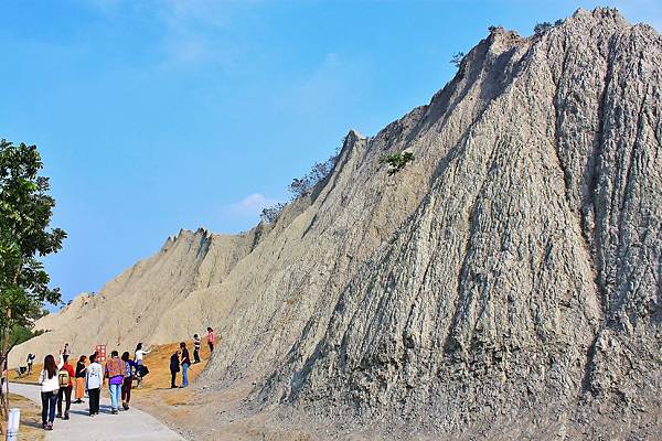 經過了玉池,接下來就是500公尺的惡地步道。遊客們都可以在"山腳"下跟這些泥沿山丘合照。