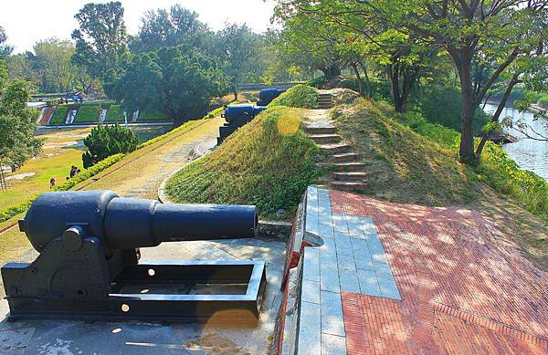億載金城城牆一隅,小砲分佈在南側與北側的城牆上。