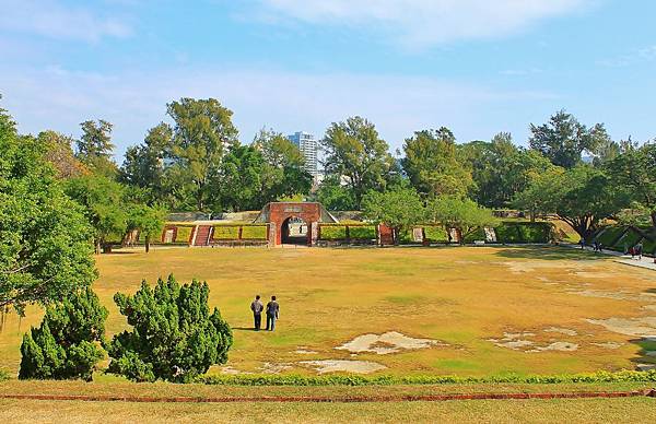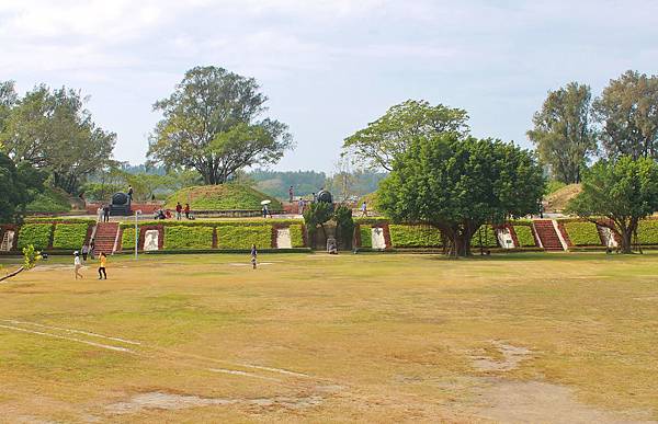 正前方操練場,遠方的城牆上就是三尊阿姆斯脫朗大砲!