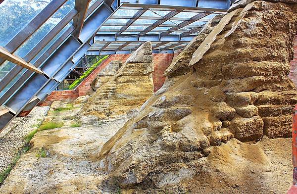 兵房及小砲用彈藥庫遺跡。這是1996年修復扶壁時所發現的遺跡。為避免這些基礎遺跡和三合土扶壁再受風吹雨打,已用鋼架和安全玻璃罩加以保護。