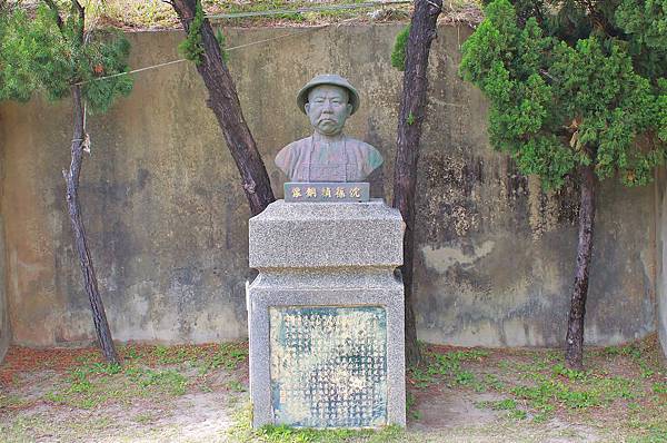 沈葆楨銅像,位在阿姆斯脫朗大砲砲座的下方。