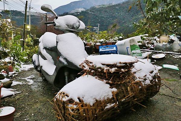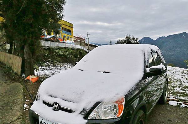 這台應該是山莊主人的車,也在這裡停了一整夜,雪蓋滿滿!