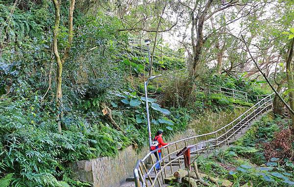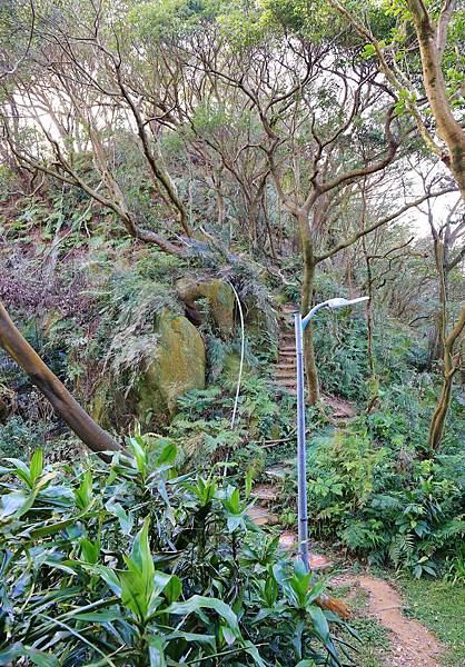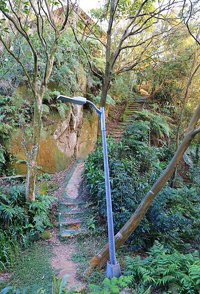 此路徑頗為刺激,路徑狹小又陡又濕滑,行走時需要格位注意!發現對面也有個小山頭,山頭上有座小涼亭,今天就已此為目的地吧!