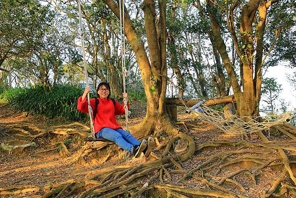 到了另外一棵山頭上,發現這裡有好多吊床,也有一座鞦韆!於是厚著臉皮玩了起來~
