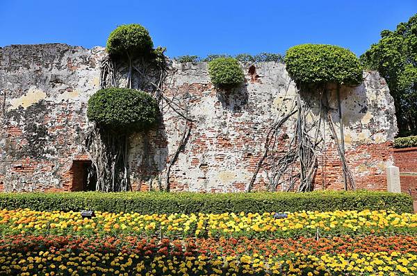 熱蘭遮城外城的南城壁遺跡,算是保存較好的一部份。如今斑駁蒼勁,壁面上有古榕盤纏,老根新葉交錯,充滿歲月滄桑的美感!早期並無水泥,整座城壁是以糖水和糯米汁搗合蠔殼灰、砂等,疊磚而成,並稱"三合土"。又因先民稱荷人為"紅毛番",故又稱"紅毛土",寄數非常精良,構築十分堅實而鞏固。