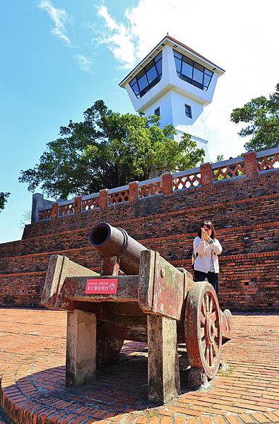 安平古堡內可見數門古砲。這些古砲主要是西元1930年日本人舉辦台灣文化三百年,整建荷蘭城,並從他處移來清嘉慶年間台灣水師協鎮署所鑄造之前膛古砲,至於城上供人觀賞。