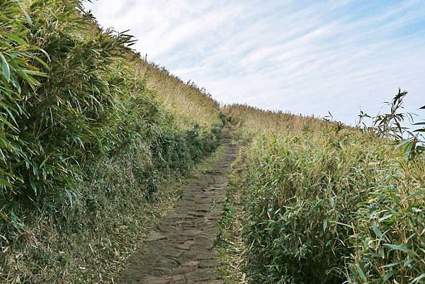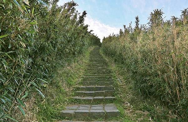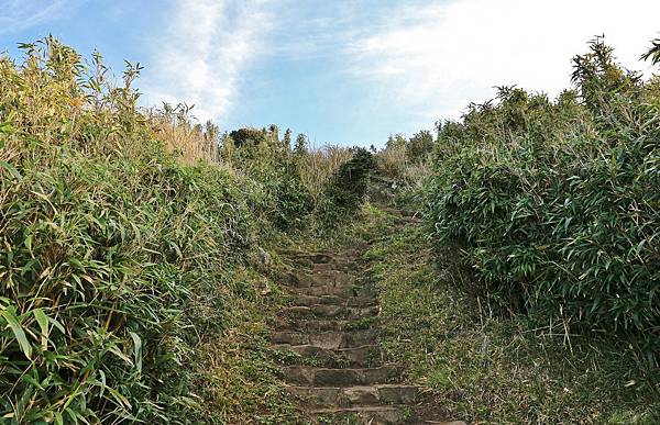 起登後,就是筆直、緩上的石階步道,兩旁的箭竹長得都比人還要高了。好幾年前在夏天來訪,路上好多好多石龍子,但這次卻都沒有發現!