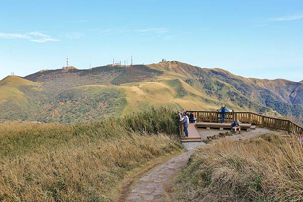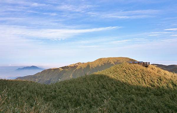 在第二觀景台稍做休息後,就往七星山主峰和東峰出發!遠方的山頭即是七星山主峰。