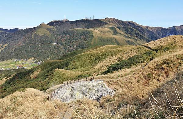 攝於七星山主峰山頂,鳥瞰小油坑遊憩區、竹子湖與大屯山群一帶。