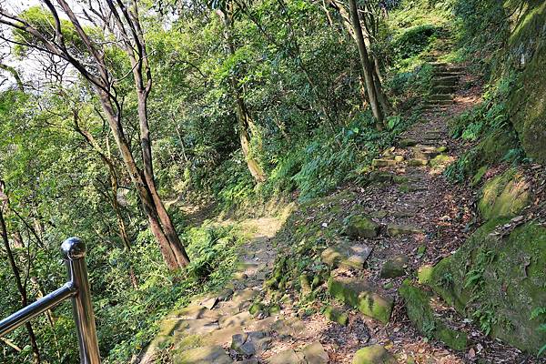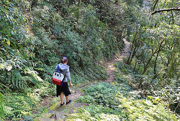 秀峰瀑布步道一景,大部分都是石階或石塊路徑,緩坡向上或向下,算是相當親民的一條步道。