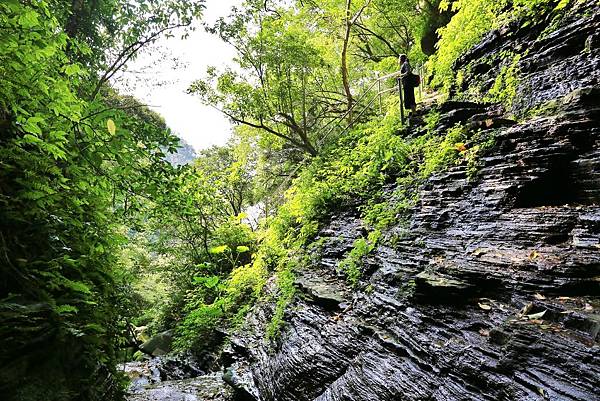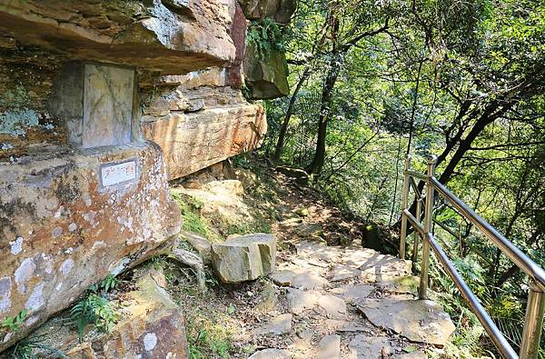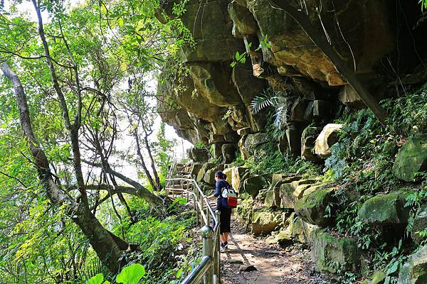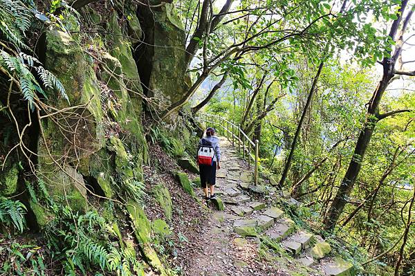 秀峰瀑布步道一景,步道都是沿著岩壁而行。