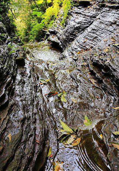 如果從右側下來,就必須通過層層的頁岩地形,非常刺激!岩石上登非常濕滑,有些還長了青苔,須格外注意!