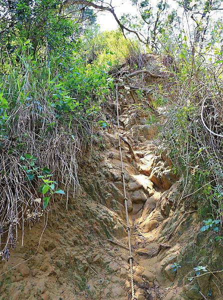 第二段攀爬路徑!觀音山因含鐵質略呈黃色,多為粉砂岩