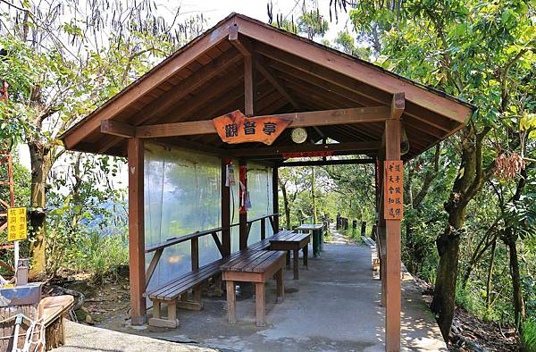 水泥涼亭後方即是木製的觀音亭。觀音亭後方是接環山道路,觀音山的環山道路四通八達!