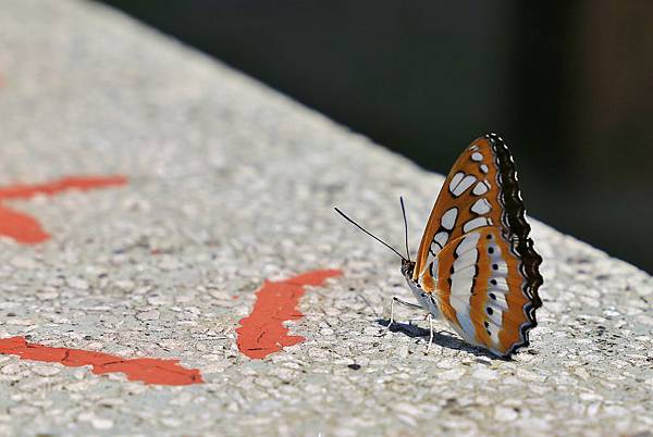 椅子上的白三線蝶,學名Athyma perius。特色在於後翅亞外緣的白色橫紋靠近內側部位,各翅室均有一明顯黑斑。
