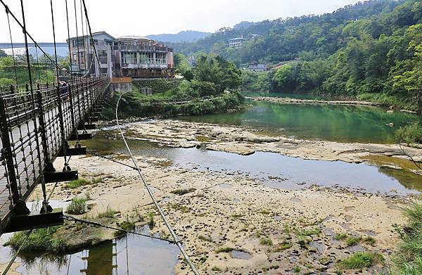 前往十分瀑布的路上,回望四廣潭吊橋。