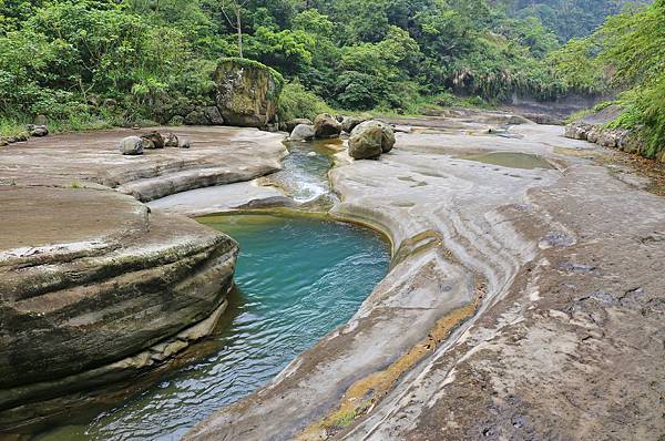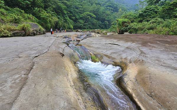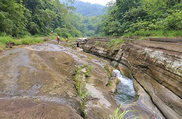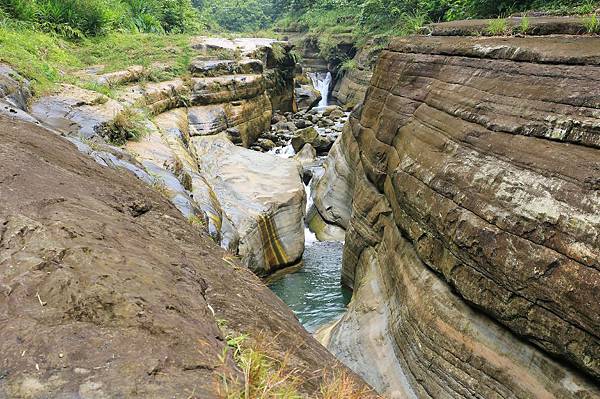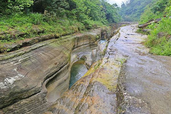 到達河谷處!這裡就是傳說中的萬年峽谷,河水將沿壁一層一層的切割,相當壯觀!對大自然的鬼斧神工感到讚嘆啊!岩壁上如有流水會相當濕滑,行走時要非常注意,否則一不小心就會滑落河谷中...