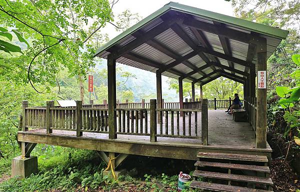 經過這座涼亭在往下走即到達河谷處。可惜這裡的樹蔭茂密,涼亭的視野展望不佳。