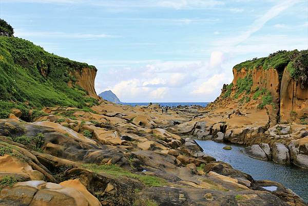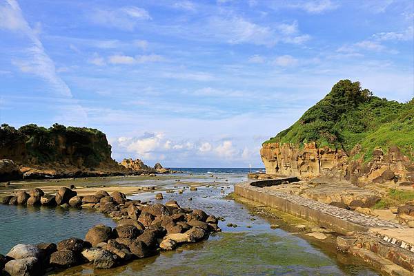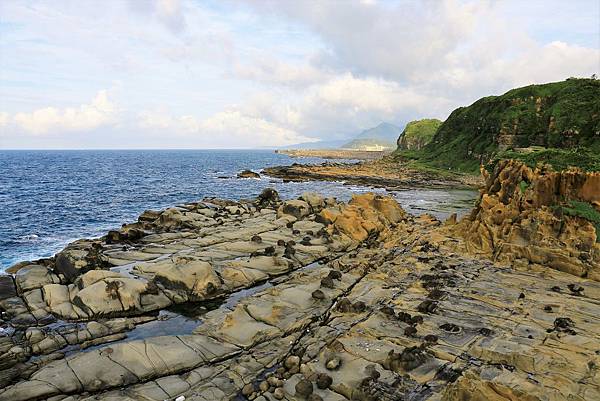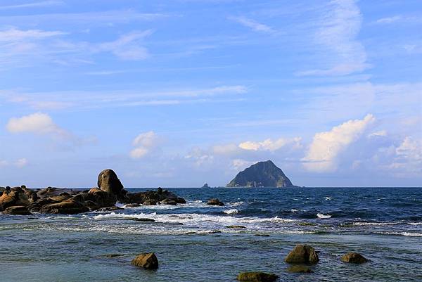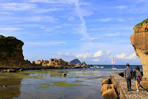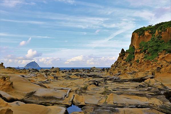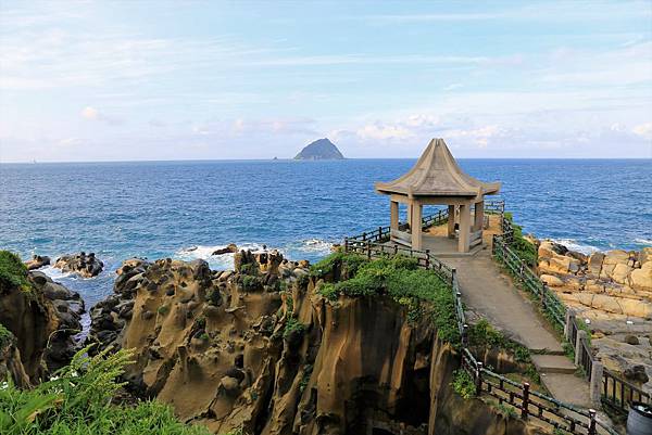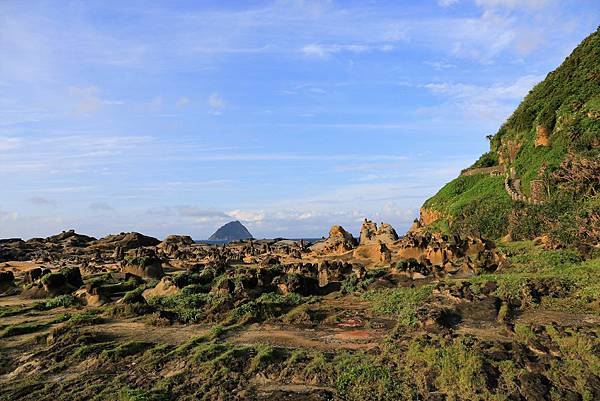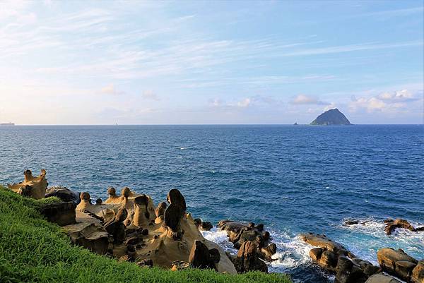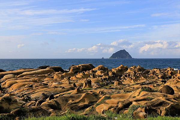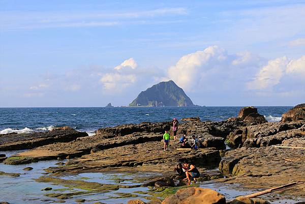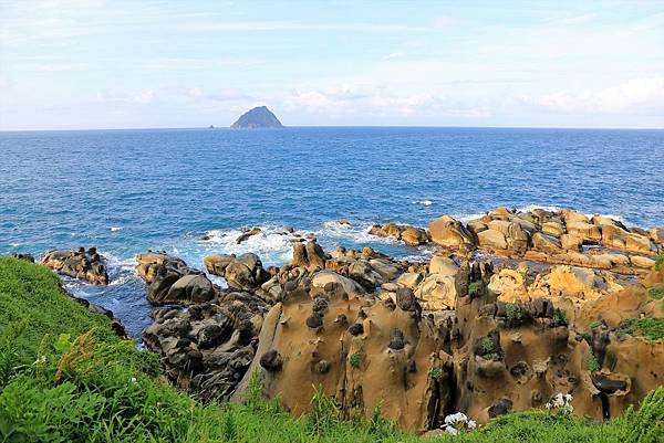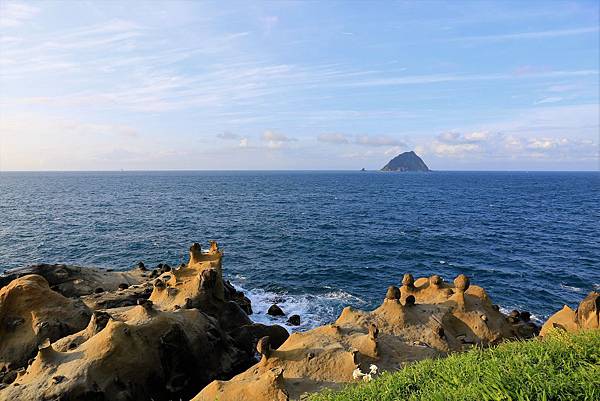 奇岩怪石配上遠方很像烏龜的基隆嶼。