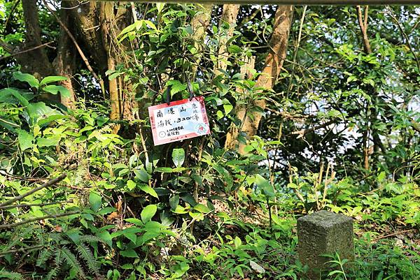 意外發現南港山東北峰的土地調查局圓根點基石! 南港山東北峰海拔320公尺,基石位於步道的護欄旁。