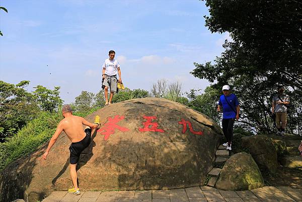 抵達95峰!95峰,海拔375公尺,為南港山系的最高點,硬是比南港山高了1公尺,可能是多了這塊巨石的關係吧!