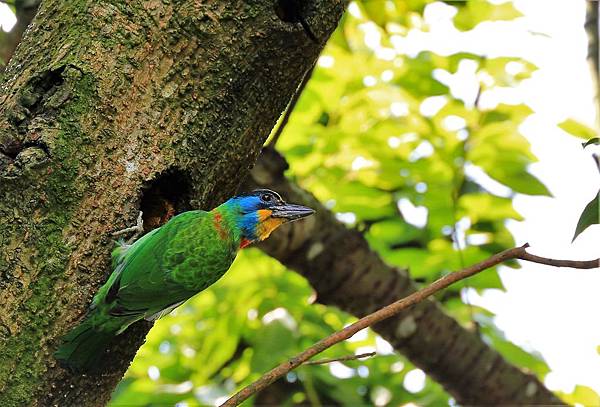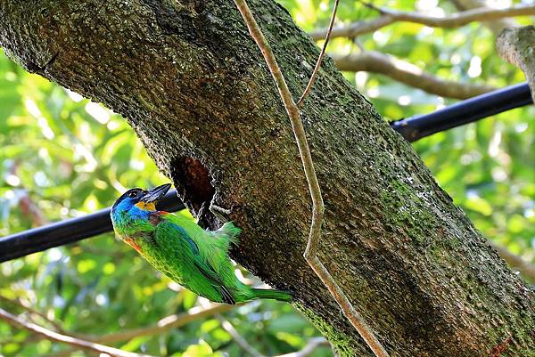 回程發現一隻五色鳥在啄樹幹,相當特別!