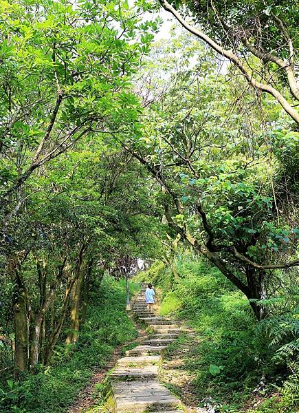 南港山,麗山橋口登山步道一景,樹蔭林立,蚊蟲也很多。前半段是這種木棧步道,還算好走~