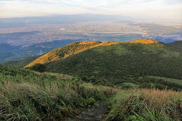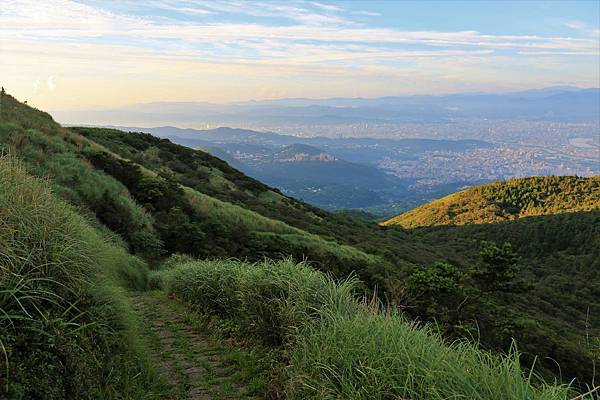 步道上視野展望極佳,可以遠眺整個大台北盆地。對面的山頭由左而右分別是大屯山南峰、大屯山西峰與面天山。