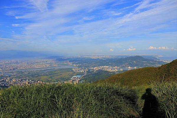 大屯山南峰山頂一景,對面八里的觀音山、基隆河和台北港都看得一清二楚!