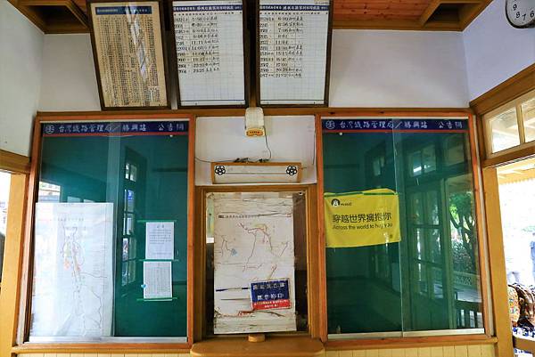 售票亭,因火車已停駛,現已無售票。上方的火車時刻票還是用手寫的呢~