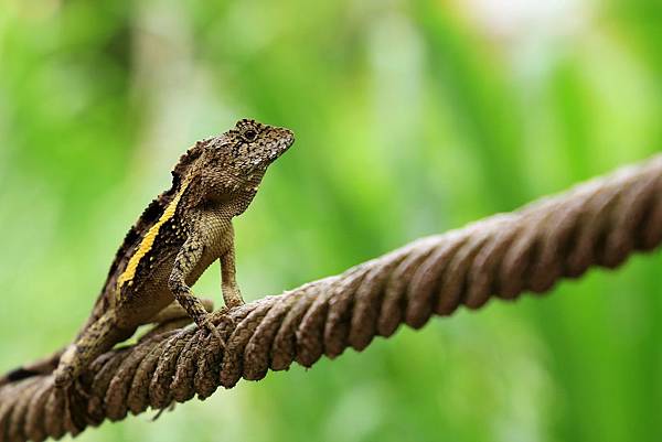 進入車站的步道上,有許多攀木蜥蜴在繩索上納涼吹風!
