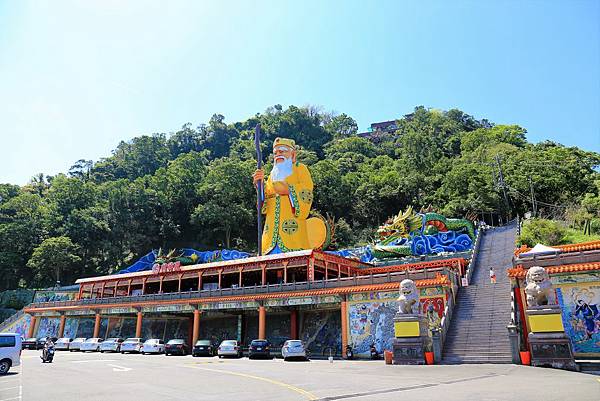 平時有行經北二高中和路段的開車族們,應該對此超大尊的土地公像不陌生吧!?原來這尊土地公像就座落於中和烘爐地的福德宮財神殿屋頂上!一旁又寬又長的樓梯就是南勢角山的登山入口。