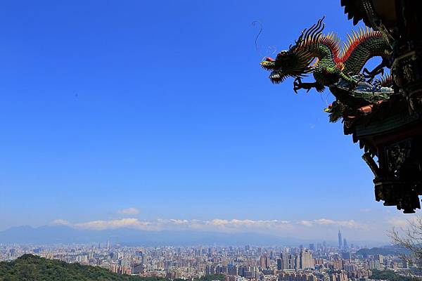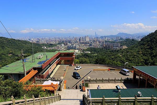 財神殿所座落的位置視野展望極佳,一度還想說都已經看到大景就不爬山了!這裡可以願跳中和、永和和台北市中心,101大樓右手邊就是南港山了!