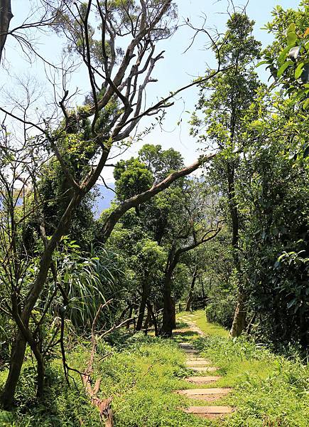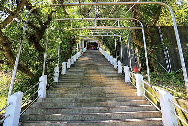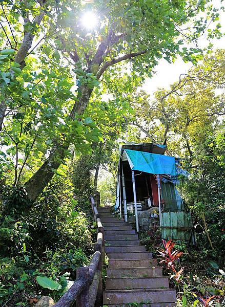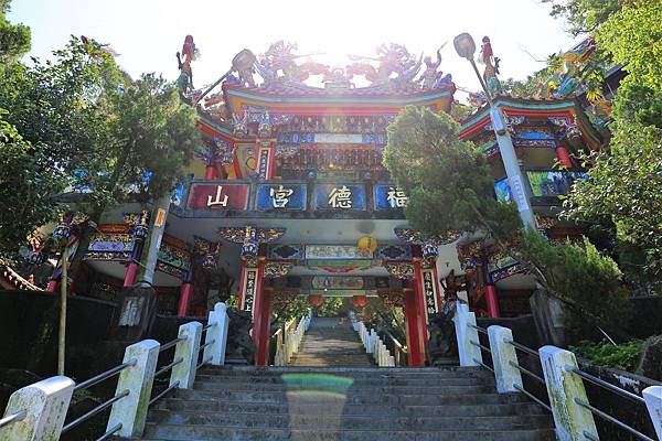 樓梯步道雖然好走,但相當陡,走起來還是會氣喘吁吁!中途會經過福德宮的牌樓。